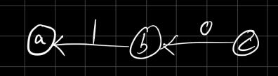 假设有 a, b, c 三个节点, 关系如图